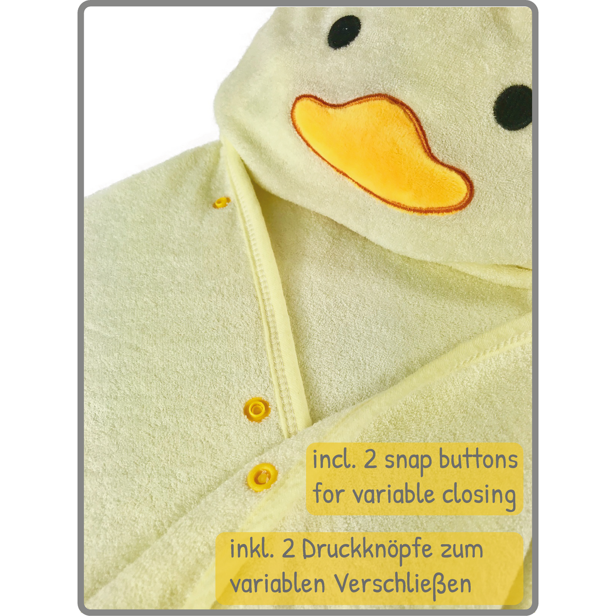 Zahvaljujući korisnim drukerima, ručnik ostaje na mjestu i tijekom igre ili presvlačenja, savršeno prianjajući uz bebino tijelo.