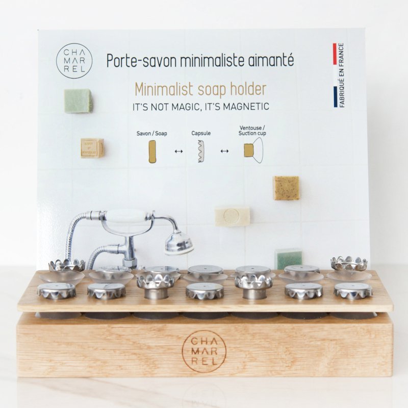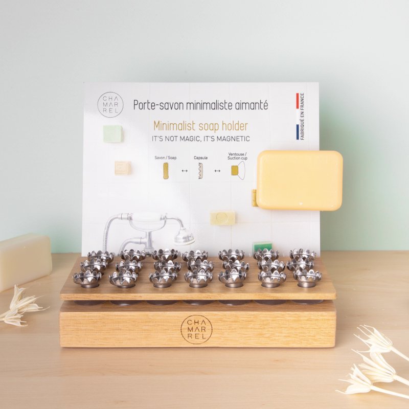 Stalak dolazi s 21 magnetskim držačem za sapun u rinfuzi (bez pakiranja), spremnim za izlaganje i prodaju.