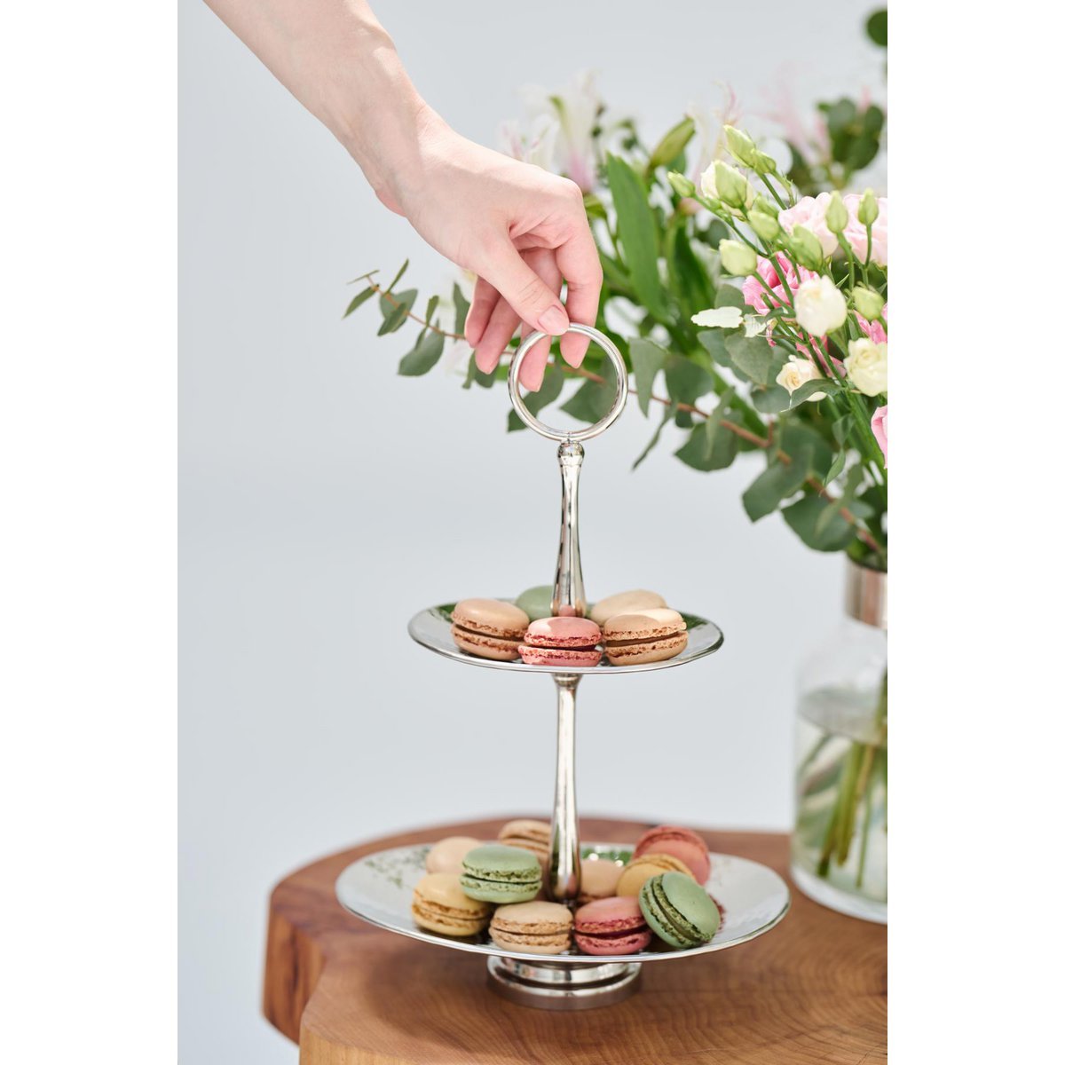 Ovalni dizajn i dvije razine omogućuju atraktivno prezentiranje hrane, dok stabilna konstrukcija osigurava sigurno posluživanje. Zahvaljujući elegantnom sjajnom završetku, etažer je idealan za posebne prigode, svečane večere ili kao dekorativni element na stolu.