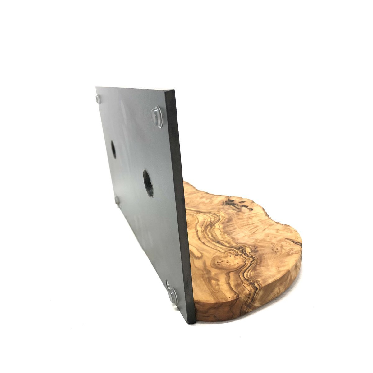 Dvije bijele porculanske zdjelice, svaka zapremine 0,4 litre, služe kao posude za hranjenje, postavljene na crnu, izuzetno izdržljivu podlogu (30 x 18 cm). Poseban detalj: rustikalna, masivna ploča od maslinovog drva pričvršćena je kao zaštita od prskanja. Zahvaljujući prirodno rustikalnom rubu, u ovoj kombinaciji podsjeća na planinski pejzaž.