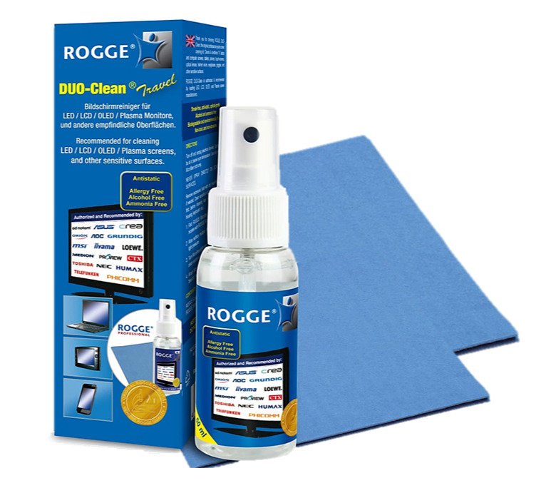 ROGGE 50 ml sredstvo za čišćenje zaslona uključujući 2 ROGGE profesionalne krpe od mikrovlakana, 18×20 cm. NOVI set za čišćenje tableta i pametnih telefona brenda ROGGE s novom i poboljšanom formulom. Profesionalno sredstvo za čišćenje: LCD/LED/mobilnih staklenih zaslona, kao i za tablete, pametne telefone, nove satove, All in One uređaje te sve glatke i osjetljive površine. Original od ROGGE-a!