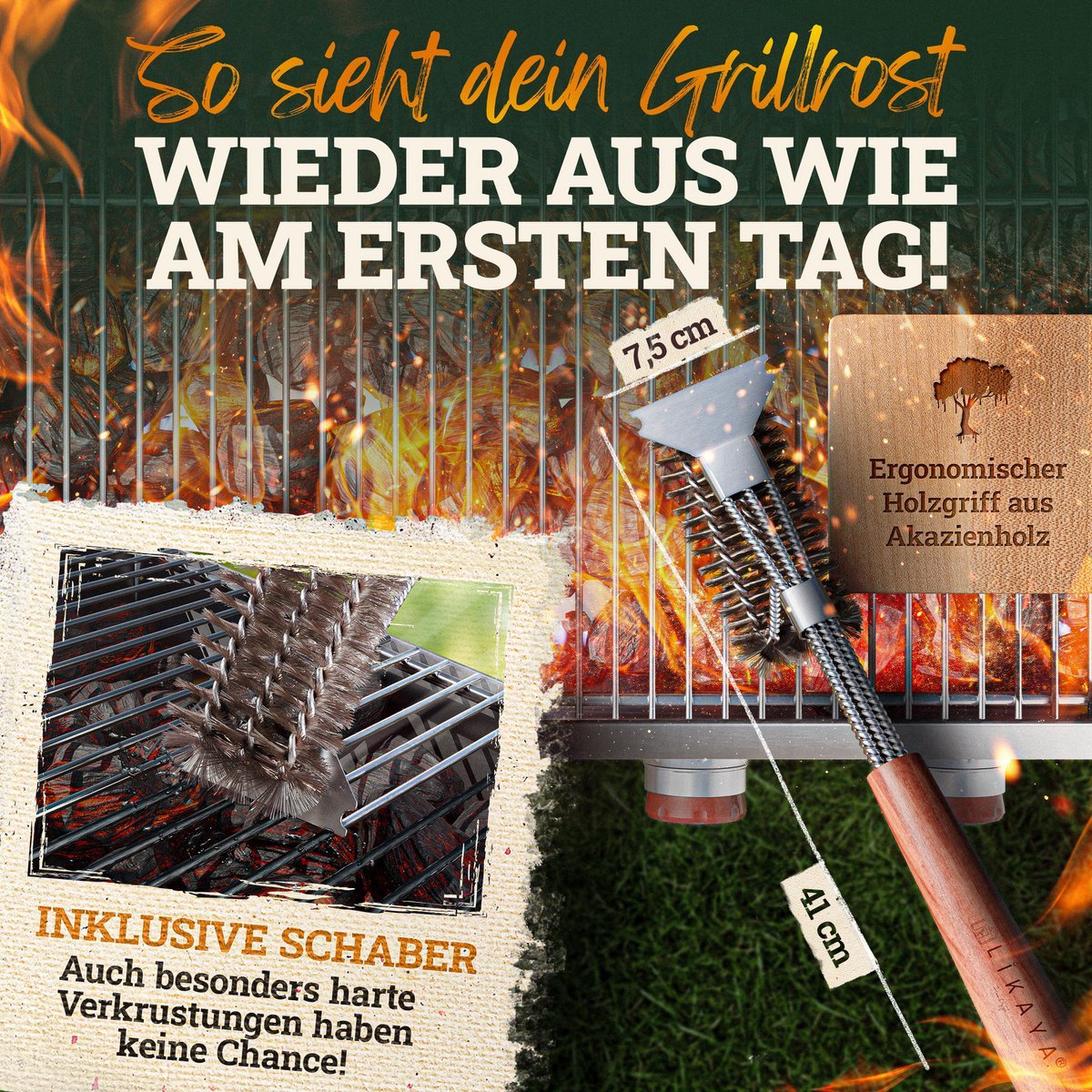 Get your perfect weapon for a shiny clean cleaning of your grills with the Likaya Premium grill brush made of stainless steel and acacia wood! The extra thick bristles protect your grill rust and the galvanized bristles clean even stubborn dirt without damage to the surface. With the Likaya grill brush, grilling becomes a pleasure again!
