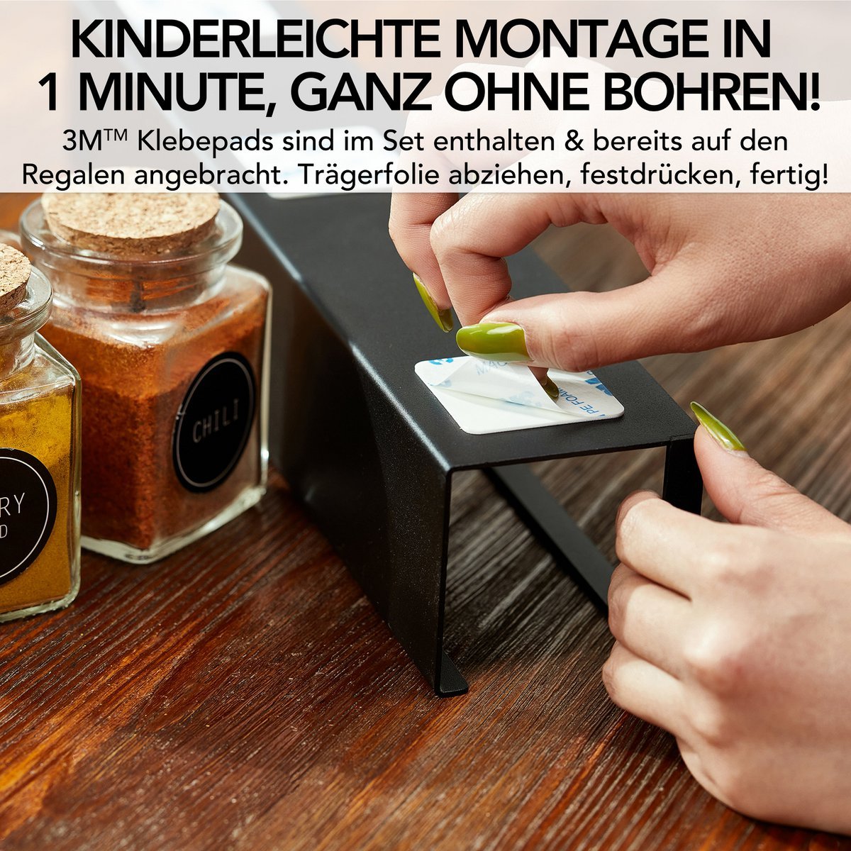Spice shelf (2 Set) made of black metal with 3M ™ adhesive pads
